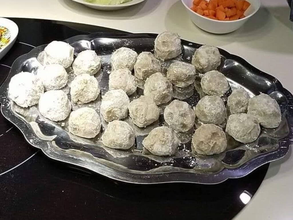 - Forma las bolas de albóndigas con las manos humedecidas en agua para que no se te pegue la masa y rebózalas en harina.